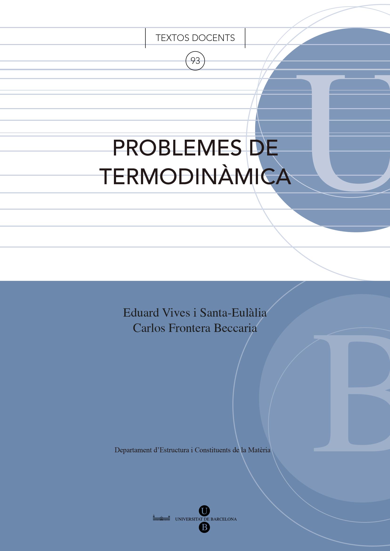 L'assignatura de Termodinàmica és, probablement, una de les que més sorprèn l'alumne. És una disciplina matemàticament senzilla, que es basa en uns principis que semblen simples a primera vista però l'aplicació dels quals és universal i permet enfrontar-se a l'estudi de qualsevol sistema macroscòpic. Per tant, és raonable que en l'assignatura es doni molta importància a la part de problemes. És per això que s'ha elaborat aquest text-guia, amb l'objectiu d'ajudar l'alumne a passar de la teoria a la pràctica.